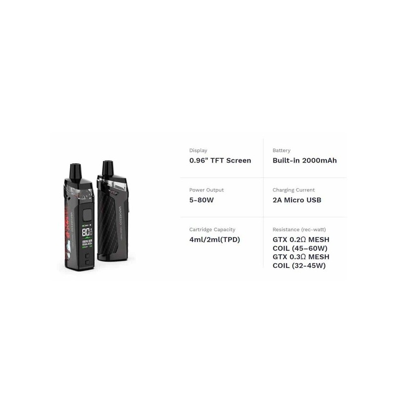 CARATTERISTICHE PRINCIPALI VAPORESSO TARGET PM80 POD KIT |