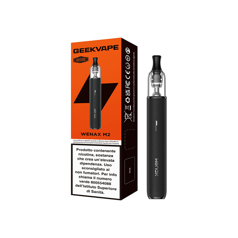 WENAX M2 Leather Edition è il nuovo Kit Pod Mod Geekvaper con Batteria Integrata da 1200mAh, e wattaggio fisso max 16 Watt, Pod Serbatoio 2ml con Resistenza Integrata 0,8 ohm, ideale per il tiro di Guancia aromatico e corposo. La Versione Leather è realizzata con finiture naturali che aggiungono al tuo svapo un tocco di stile.