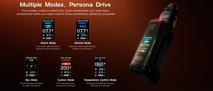 - Modalità svapo: ECO/SMART/NORMAL/CUSTOM/TC