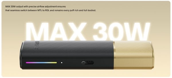 Dotato di una batteria integrata da 1350 mAh e di una potenza massima di 30 W, si adatta automaticamente al tuo stile di inalazione grazie al suo sistema di alimentazione adattivo.